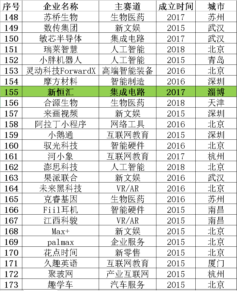 2020年9月,“2020中國潛在獨(dú)角獸企業(yè)研究報(bào)告發(fā)布會”在江西南昌舉辦。會上長城戰(zhàn)略咨詢發(fā)布了中國首份《2020中國潛在獨(dú)角獸企業(yè)研究報(bào)告》,報(bào)告包括了2019年中國潛在獨(dú)角獸、2020年新晉潛在獨(dú)角獸兩份榜單。潛在獨(dú)角獸必須成立時間在十年之內(nèi),并且尚未上市的中國境內(nèi)企業(yè)。據(jù)了解,今年共有296家企業(yè)入選該榜單。其中,新恒匯作為集成電路賽道的代表企業(yè)列入該榜單。