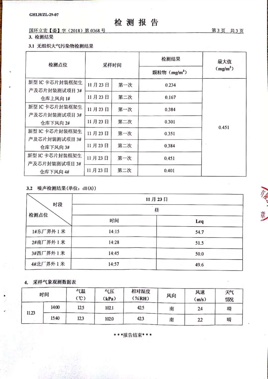 大氣污染物、噪聲檢測--新型IC卡芯片封裝框架生產(chǎn)及芯片封裝測試項(xiàng)目3#倉庫